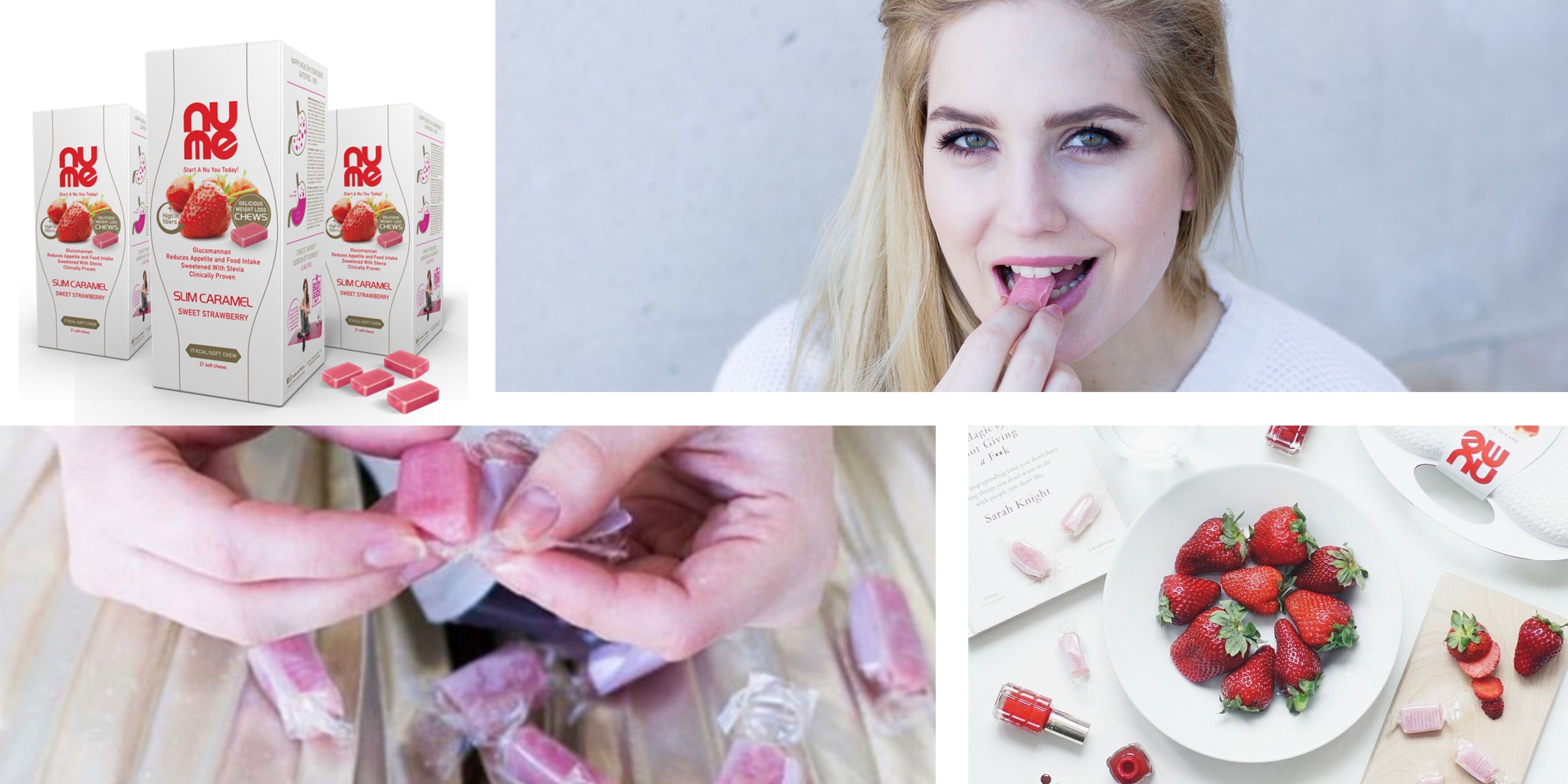 Vitkost i put do zdravijeg načina života je sa nuMe Slim mekim bonbonima Slatka Jagoda s glukomananom, puno jednostavnija. Ukusan voćni bonbon pomoći će vam svaki puta kada vam je potrebno brzo rijšenje za prazan želudac ili kao dodatna pomoć u prvim danima prelaska na vrlo niskoenergetsku prehranu sa nuMe Slim obrocima.