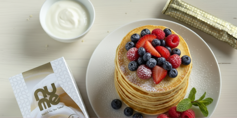 Za nekoliko drugačen okus, zamenjaj nuMe Slim Shake s kolagenom Francoska vanilija za drug okus. Gotovo ti bodo LCHF palačinke po tem receptu teknile tudi, če uporabiš Čokoladni Muffin ali Jutranji Cappuccino.
